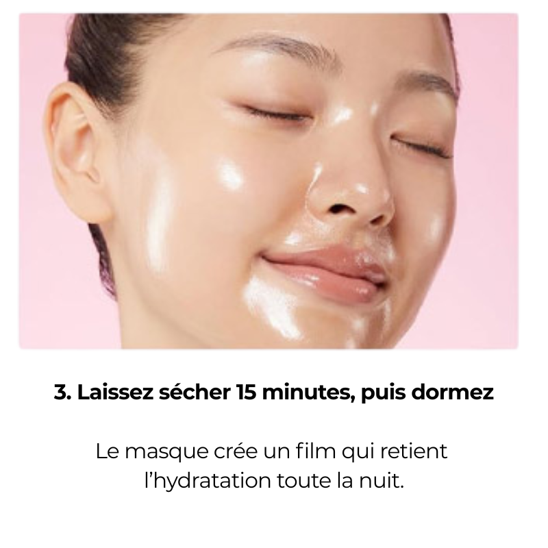 Appliquez le masque sur une peau propre, laissez agir le temps indiqué, puis massez les résidus pour booster la pénétration.